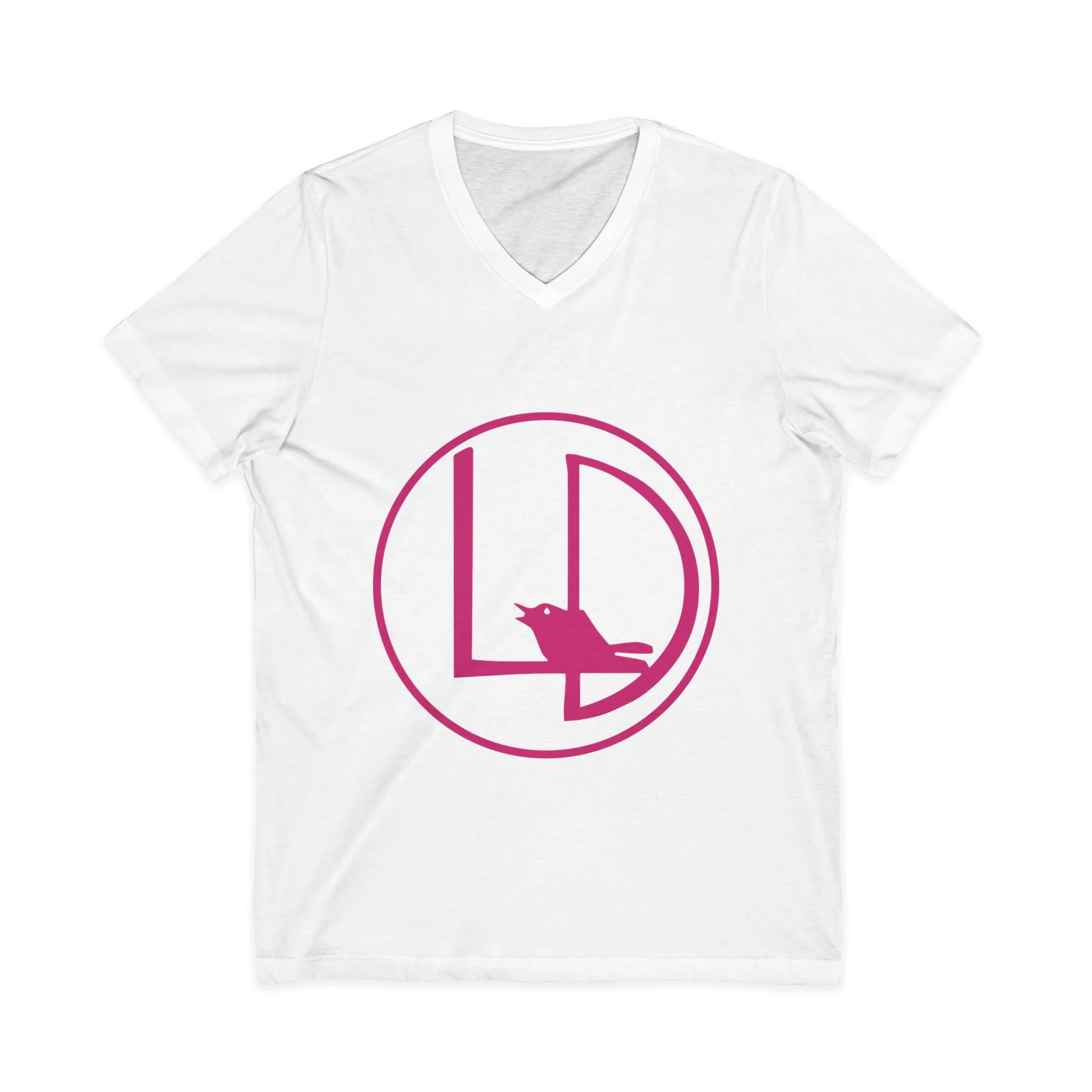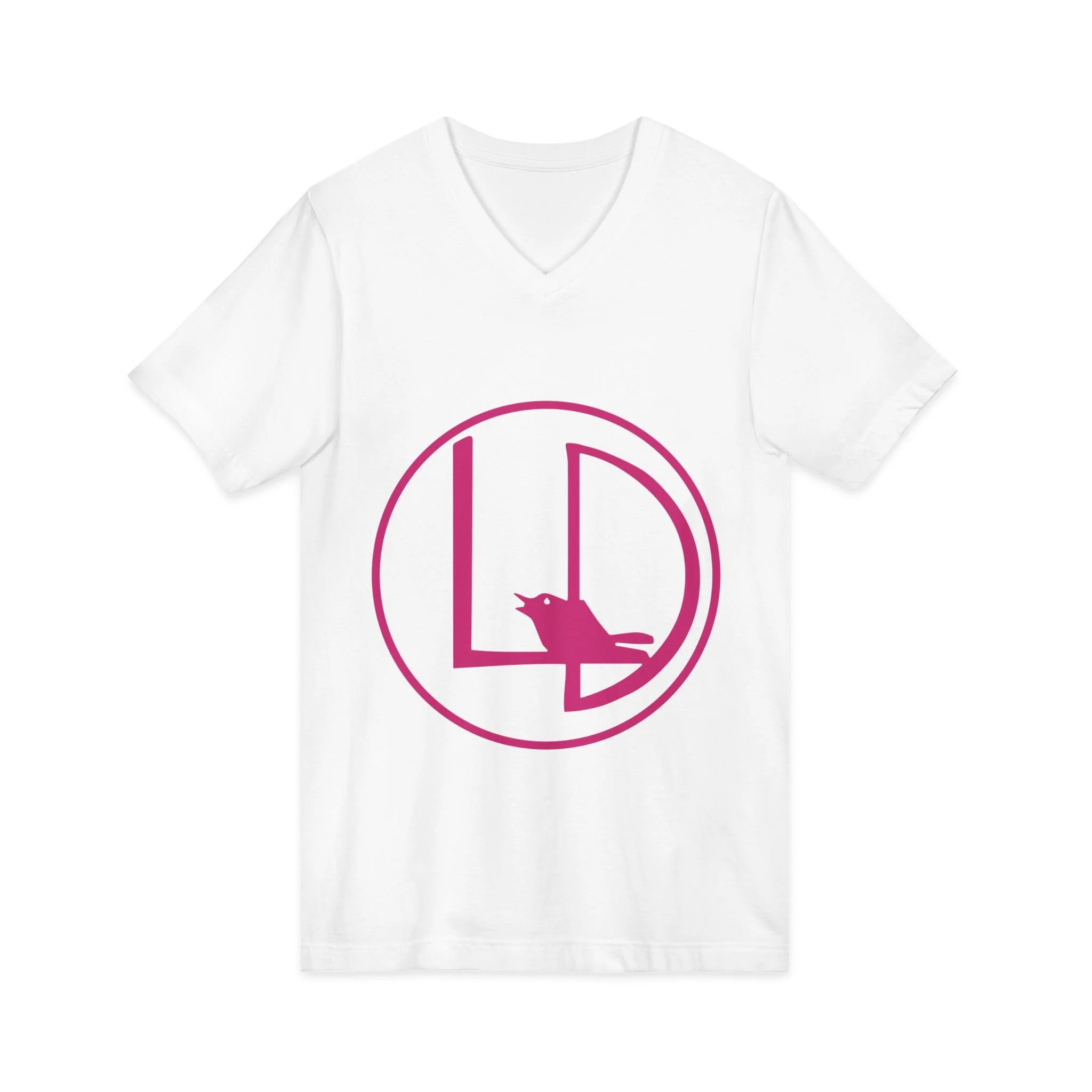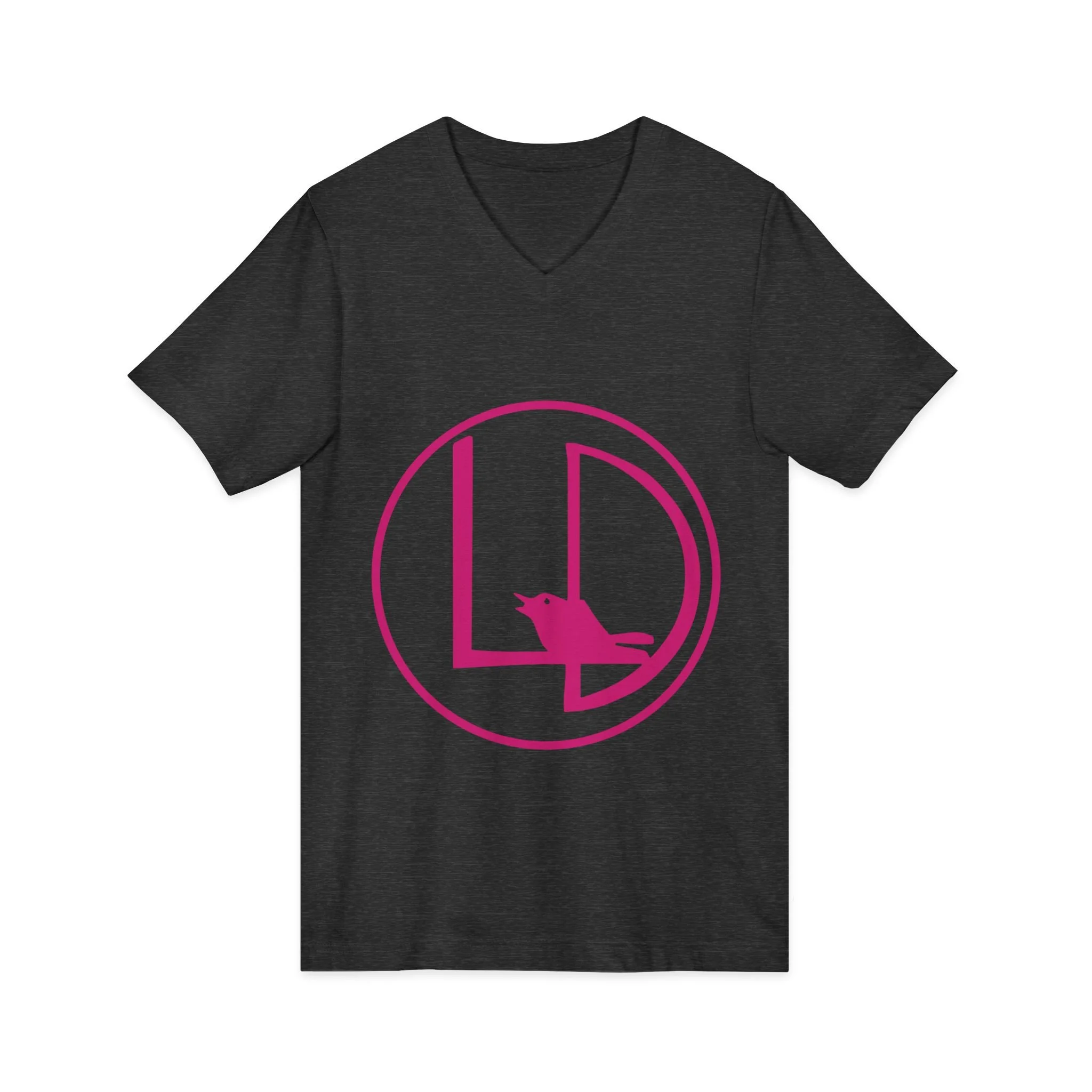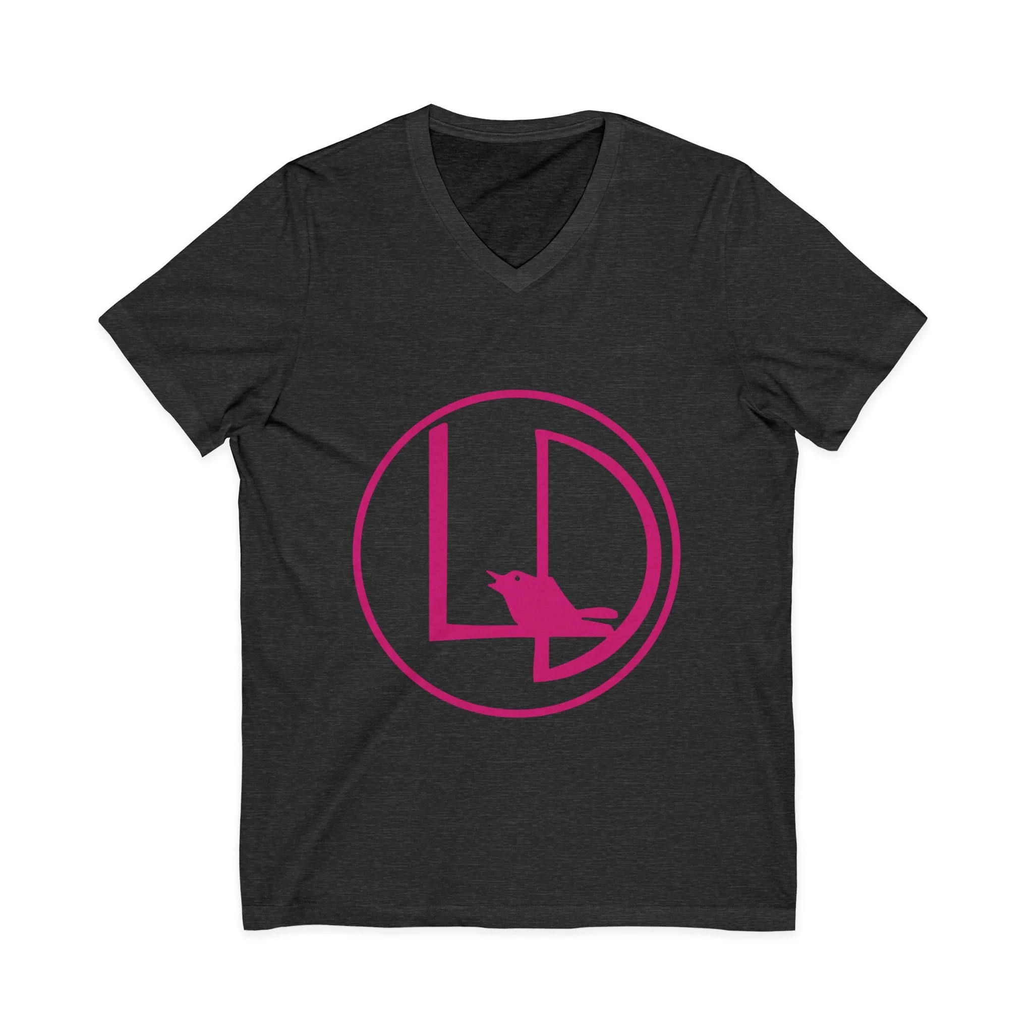 LD Monogram V-Neck Tee with Raven Logo — Minimalist Gothic Graphic Shirt