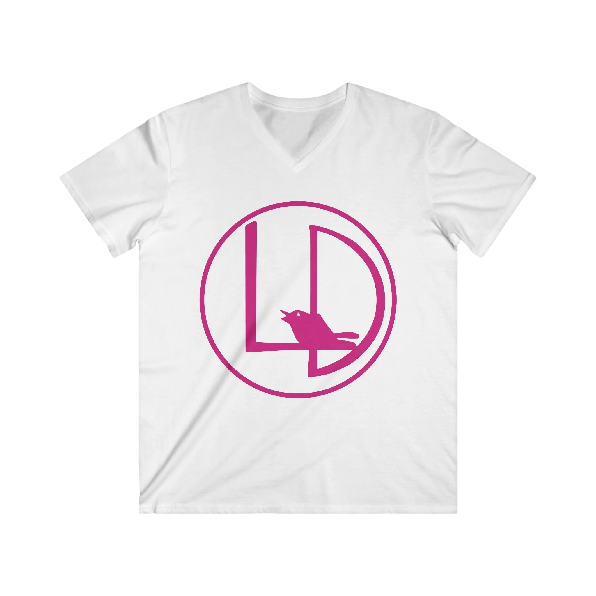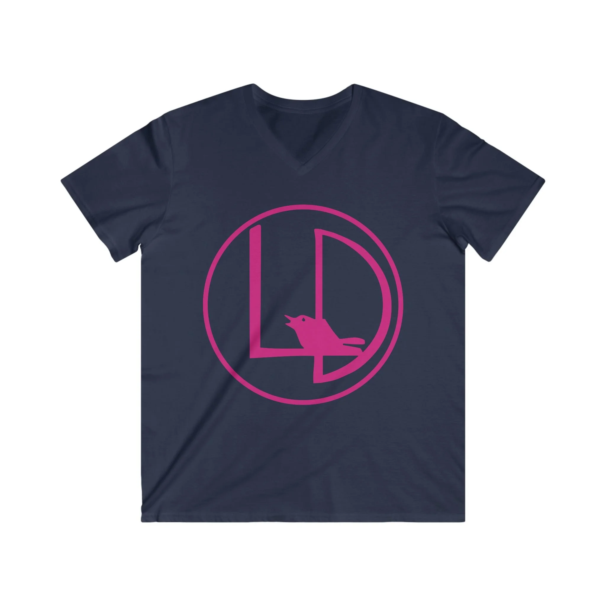 Men's V-Neck Logo Tee — Pink LD Circle with Raven